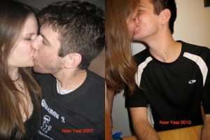 Happy New Year to my few devoted readers 🙂 New Year’s is particularly special to me as it is the day that Stephen and I had our first kiss and started the relationship I have with my future husband. You can see in the above picture the recreations of our midnight kisses from 2007 and this year. It’s interesting to see how we’ve changed physically (my hair was so long!) as well as to think of how much deeper our relationship has become and how much more I love him each and every day. We’ll be going out to Cheesecake Factory tonight for dinner like we did last year 🙂 I love him so much. And you know the best part?