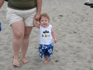 On Monday, Sandi and I took Jack to the beach for the first time. We went to Stinson Beach, which has been my favorite beach for years. I’ve been going there with friends and family for a few years now for fun, for healing, for reflection and for a gorgeous view. I’ve gone on the spur of the moment and just sat there taking it all in. The first time that Sandi and I went (by accident of course), we were both pretty close to tears at the beauty. We made it in time to see the sun setting… it was amazing. Add to that some “Indescribable” by Chris Tomlin and lets just say it was a once in a lifetime experience. When Sandi’s Tio Mario died, I took her to Stinson Beach. It was windy and overcast but the waves have a way of soothing the soul. When Stephen moved to California, I took him and Brandon to Stinson and we ate hot dogs on the beach and those two crazy guys went in the freezing water while I watched from the warmth of the rocks. Stephen and I went there on a long, beautiful drive with his dad (and continued on to Pt. Reyes). And now to add to lots of wonderful memories, I can say I was there for Jack’s first beach experience. 🙂