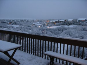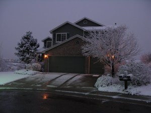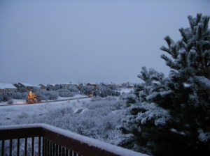 Today at approximately 2:30-3:00pm it started snowing. At first I thought it was only rain, but then the snowflakes got much bigger and much fluffier. And just like our kids, ages 2-6, I was staring out the window like it was the first time I’d ever seen snow. Which isn’t true, but this is the first time it has snowed somewhere I live and drive and work. (It did snow in Oklahoma but I was a kid and didn’t have any real responsibility) I was expecting snow on Thursday, but when I got up today it was sunny and 50 degrees at 7:30am. Then the storm started to roll in and then BAM…Snow. Apparently that’s just what Colorado is like.