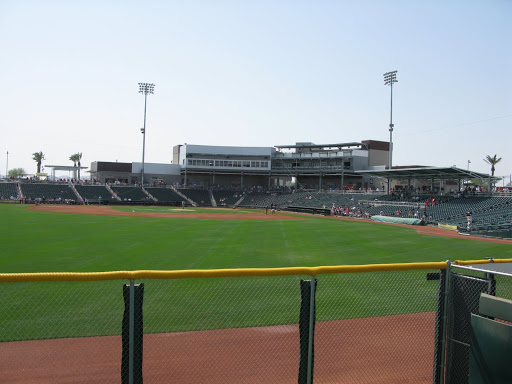 Rockies vs. Angels at home. Salt River Fields at Talking Stick (hereafter to be referred to as Talking Stick) is the brand new and gorgeous new Spring Training facility of the Rockies (and Diamondbacks, but that’s less important in this story). When we drove up, listening to Miley Cyrus no less (thanks, boys and thanks Troy Tulowitzki), we were all in awe of the magnitude of the complex. There are several side training fields and three team stores on the premises. The sticky-uppy-lighting fixtures (which, yes, is a technical term) remind me of the Bay Bridge, which I love and miss, so I may have thought it was more beautiful than others.
