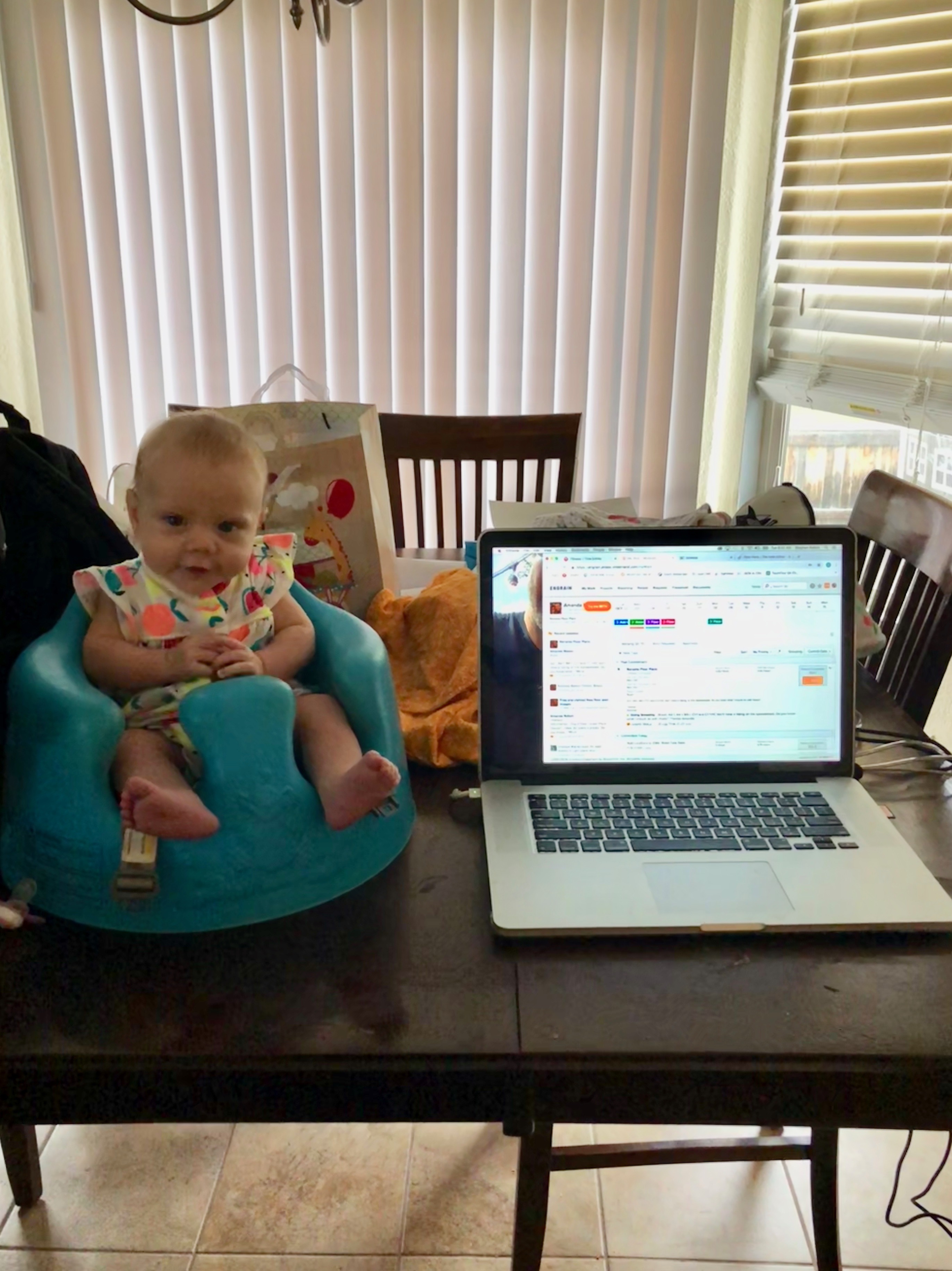 Jonathan going to preschool and Abigail napping on me in the Moby has opened the door for me to return to work at Engrain. Because it’s all computer work from home, I can get a few hours in while he’s at school that will cover the cost of preschool and then give us some extra money to use as we need it.